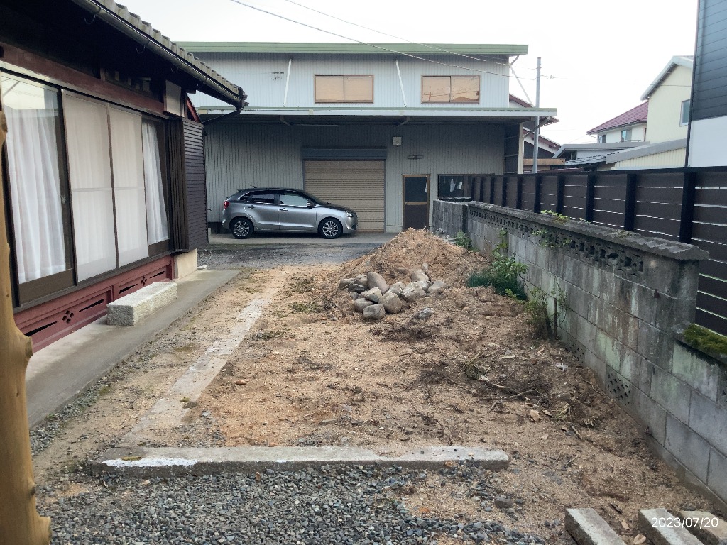 20本近くの中木の伐採抜根とカーポートの撤去、そしてトラック三台分の掘削残土処分…頑張りました!